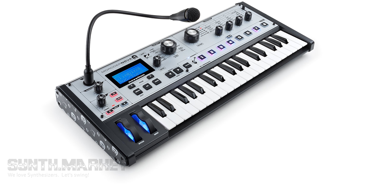 Novation MiniNova is a compact digital synthesizer for a pleasant price of $400 for a new one and about $250 for a used one in a good condition. Its calling card is a powerful sound engine, borrowed from the flagship UltraNova synthesizer, which allows you to create and manage fairly complex patches, supports 18-voice polyphony, and also contains an extensive effects processor. The keyboard contains 3 octaves of reduced keys.