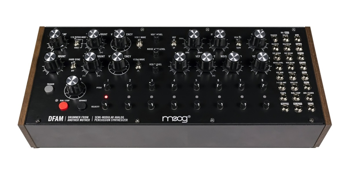 Analog percussion synth created by Moog Music will be a part of Moog’s Eurorack line. The unit is called DFAM which stands for Drummer From Another Mother. It’s a drum machine based instrument featuring more functionality in percussion patterns. Is a member of the Mother family of semi-modular synths released by Moog.