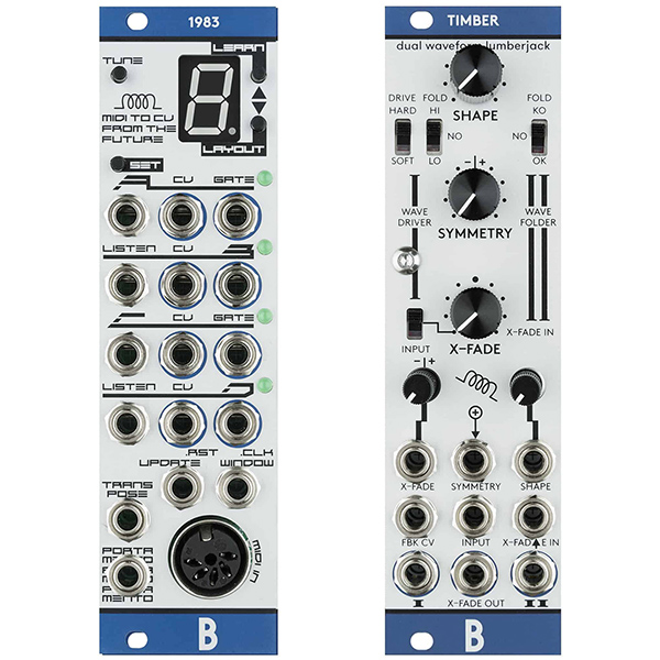 Timber представляет собой весьма гибкий Eurorack формирователь звуковой волны, путем добавления гармоник помогающий добиться жирных интересных тембров. Он состоит из двух схем изменения сигнала (I Wave Driver, II Wave Folder) с общими параметрами Shape и Symmetry. Также в модуле присутствует кроссфейдер, позволяющий управлять соотношением между двумя схемами либо одной из них и чистым сигналом. Стоимость данного модуля - 170 евро.